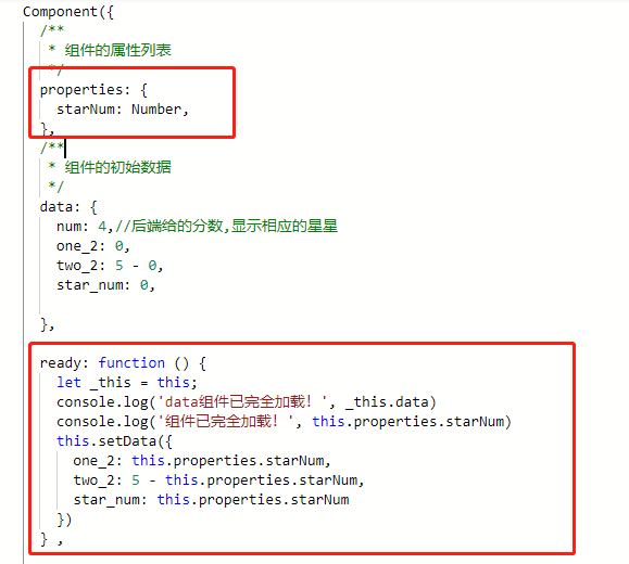 哎。。用observe来做吧。。ready只保证你组件渲染出来了,不能保证数据有了哦。。要么你给组件引用的地方加上 wx:if 用starNum控制