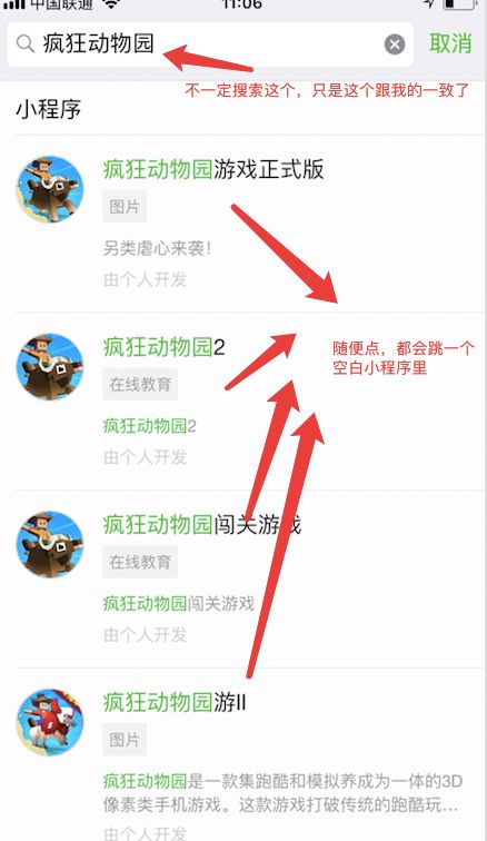 我自己开发了个 图鉴小程序供一些用户查阅资料,开始还挺好,最近论坛反应找不到我开发的小程序,我试验了一下 发现不是找不到,是 搜索结果太多了,很多都是冒名的,假的,还有一些你点了后立马跳到一个垃圾小程序里,点右上角关闭后会回到刚才那个假冒的小程序,然后那个小程序继续自动跳垃圾小程序,ios下关都关不掉,微信都进不去,只能强制关闭微信 才能使用微信。我每个星期都举报,都投诉了近两个月了,依然很嚣张的在列表里,要是再不管 我就当是默认允许了, 以后我也这么干。问题我先放这了,要是无结果我以后的小程序也打算这么干了,封我的号我就拿这个贴出来