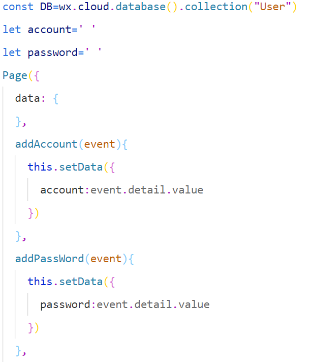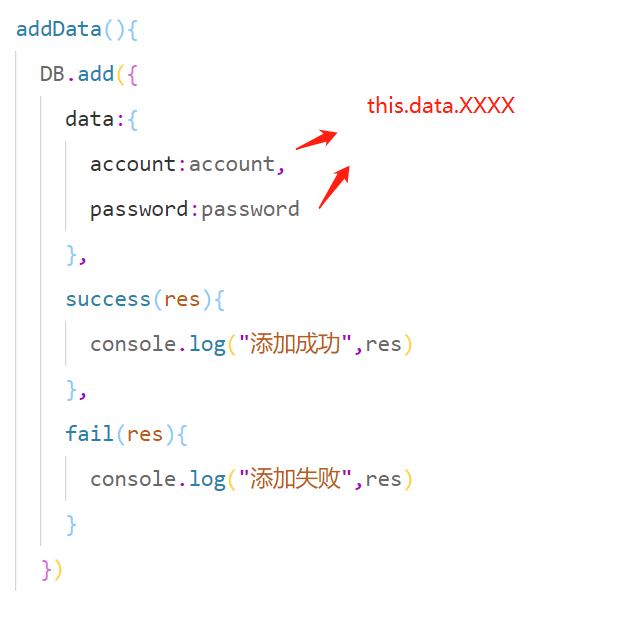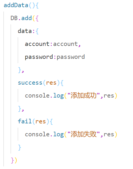 DB.add({ data: { account: this.data.account, password: this.data.password } })