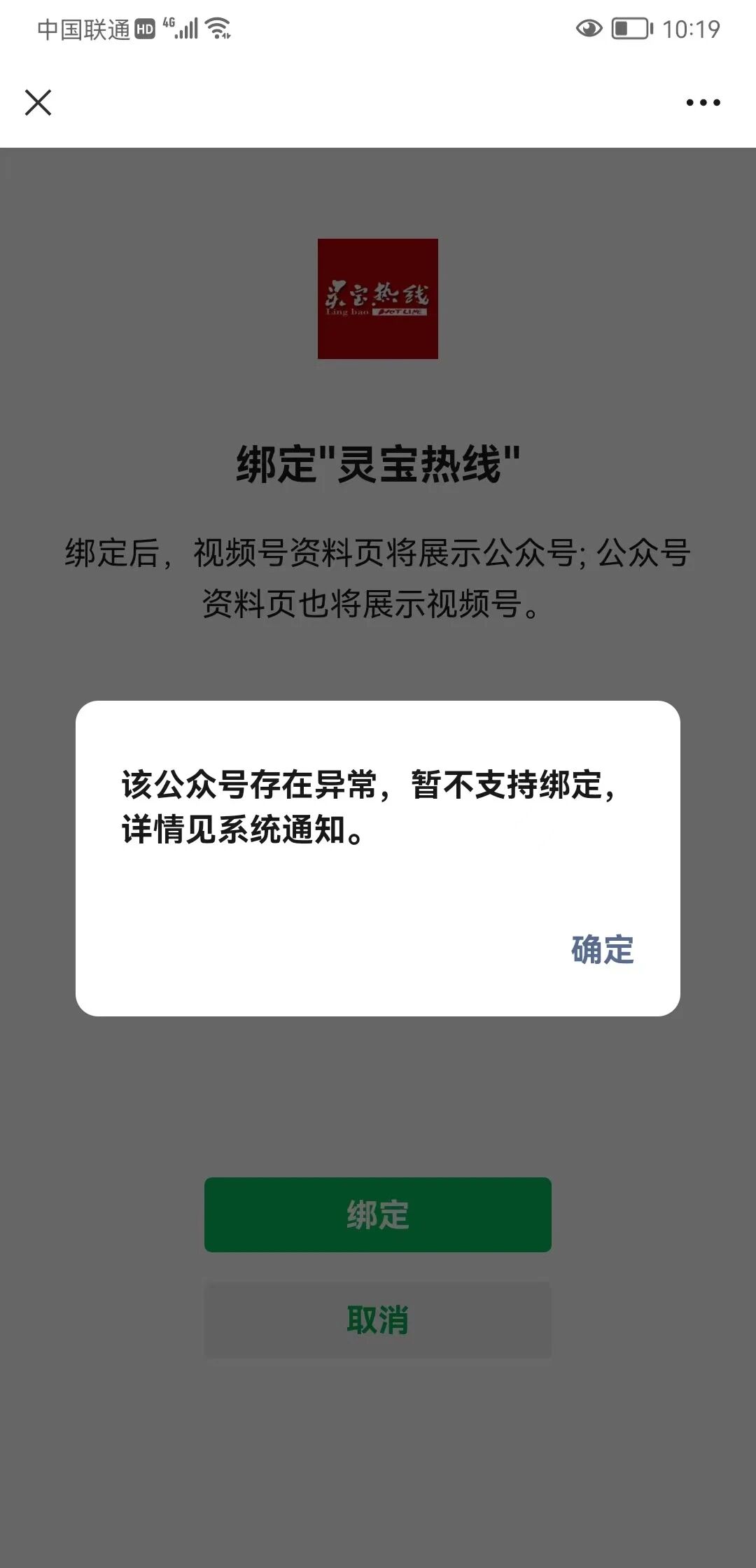 5. 问题描述:请求异常。以前绑定过好好的,然后解绑再想绑定时出现提示:公众号异常