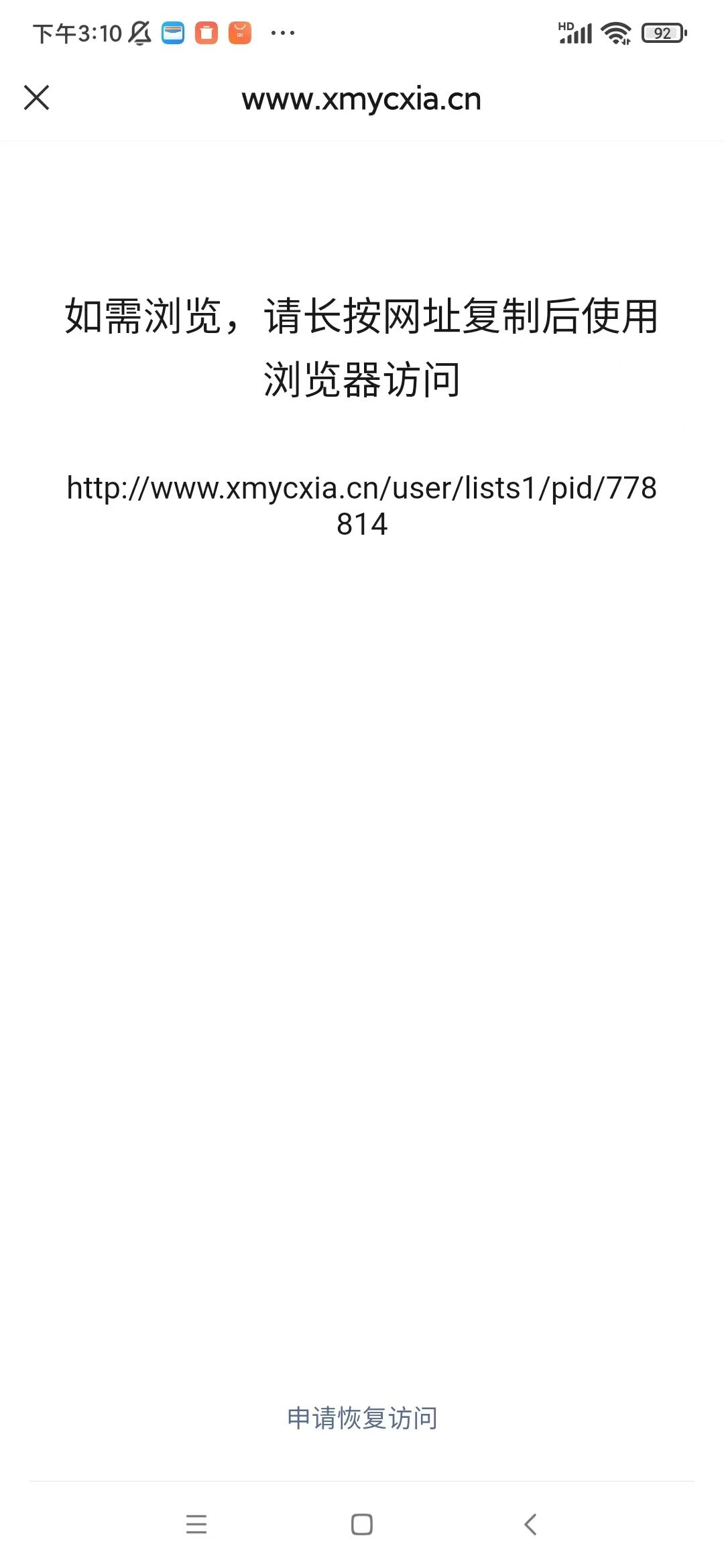 你好,经审核,域名xmycxia.cn 下的链接【http://www.xmycxia.cn/share/newdetail/article_id/1031845/pid/798906,http://qkxrm.xmycxia.cn/share/newdetail/article_id/1032160/pid/815829】等大量链接的内容存在违反《微信外部链接内容管理规范》的第2.9条“垃圾广告类内容”,请排查并把域名下相关违规内容修改后进行申诉;申诉方式可点击停止访问页底部入口进行操作,我们会在三个工作日处理,请耐心等待。详细规则请参考《微信外部链接内容管理规范》http://weixin.qq.com/cgi-bin/readtemplate?t=weixin_external_links_content_management_specification