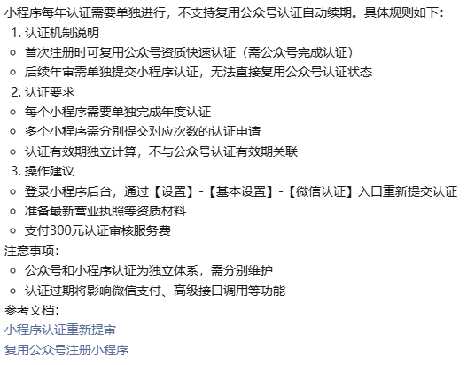 我的小程序“梦想校园圈”,是用已认证的公众号资质注册的。注册后即为认证状态。 现在公众续费认证了,但小程序却还处理未认证状态。请问是怎么回事?