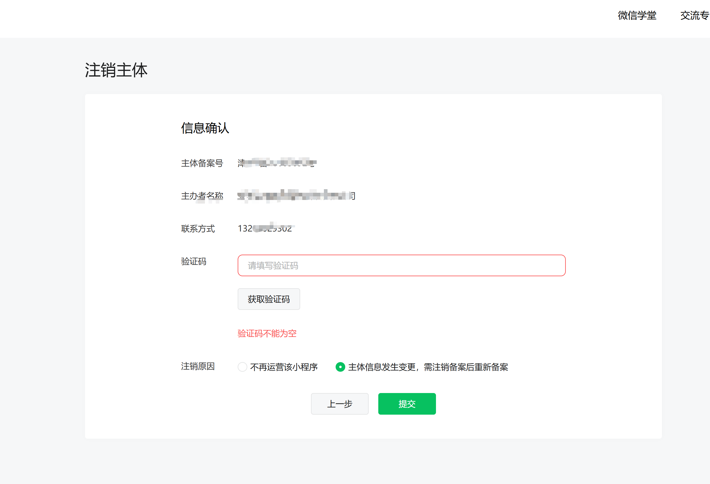 原来公司已经注销了,备案用的原来的公司的,申请主题变更就提示:不允许变更备案主体,请先注销备案,再重新备案