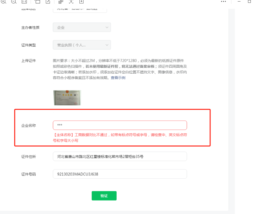 需要去工商局更新营业执照,备案的主体需要有实际名称,不能为***或者空