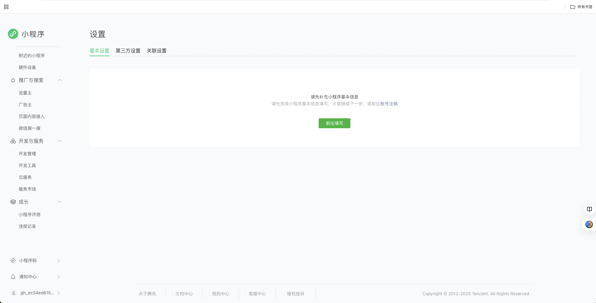 你需要进入小程序首页,看看是否是【小程序类目】或者【微信认证】右侧有按钮需要设置操作。