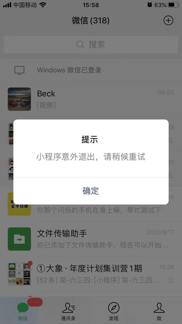 反复进入小程序次数达到30次开始卡顿白屏,50次以上小程序异常退出,导致后面无法打开小程序提示 “加载失败” 还会导致"微信闪退" ,需要重启手机恢复。
