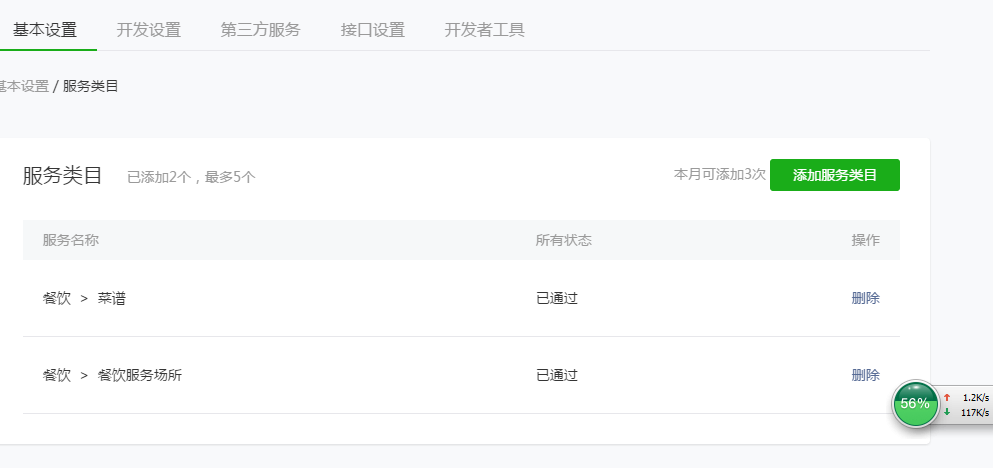 你好,请将“餐饮-餐饮服务场所”类目,添加到配置功能页面,然后重新提交审核。