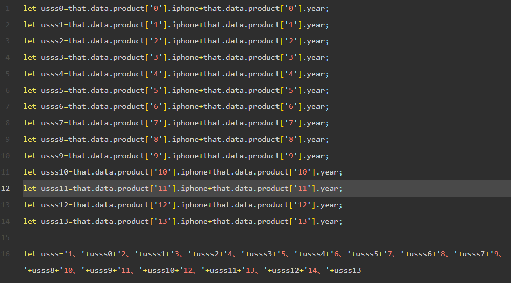 ussss = ussss + `${index + 1}、${item.iphone} ${item.year} `