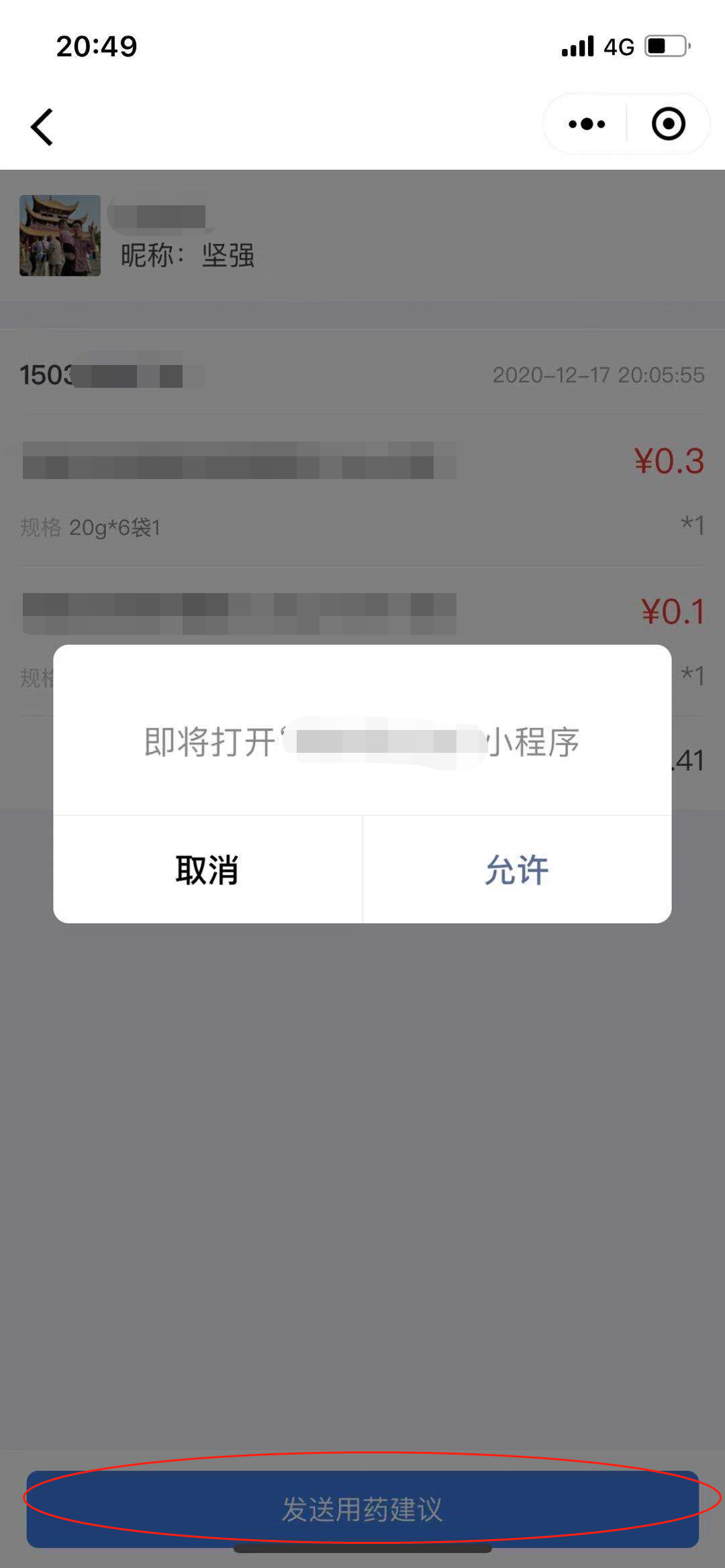 (图一此时在企业微信小程序端 点击发送按钮后跳转到 普通微信小程序B 【此时客户端仍是企业微信中】)