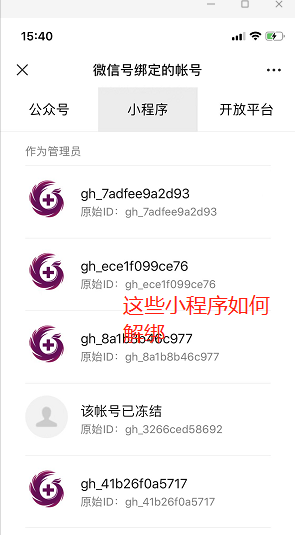 2、公众号冻结如何解绑,搜一下论坛,有回答。