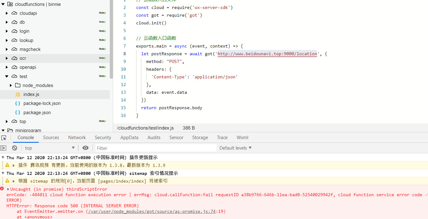 我利用云函数把我的data发送到云函数上,发生了服务器显示JSONdecodeERROE,json的解码错误