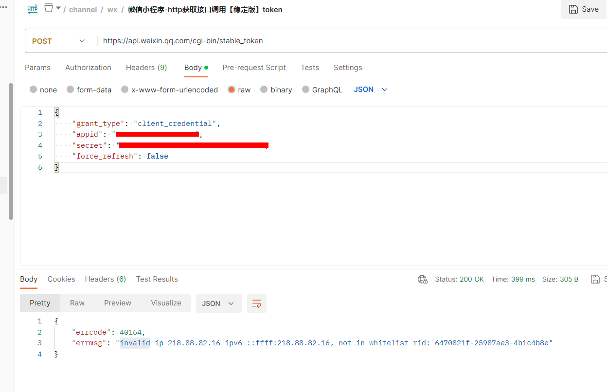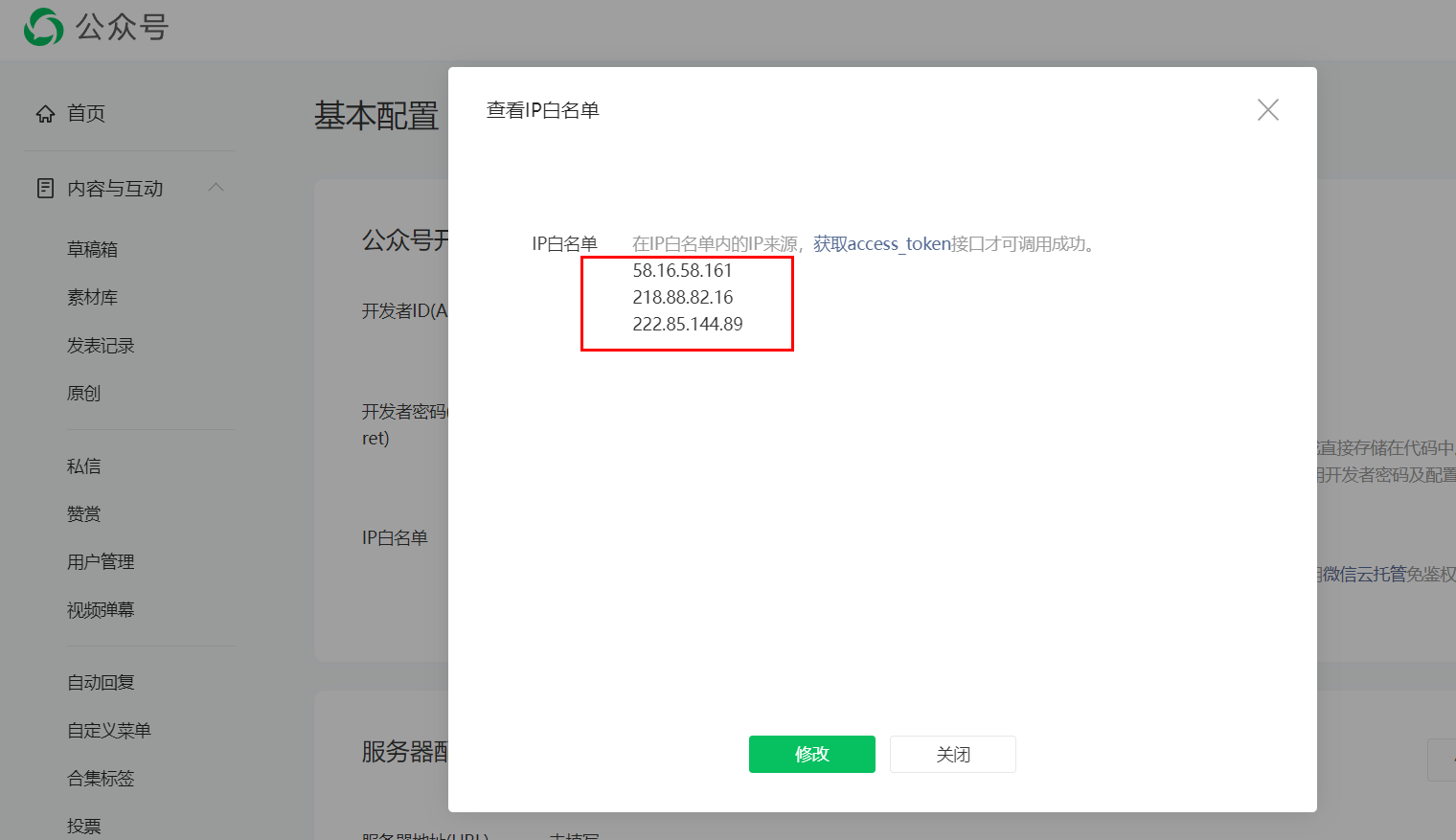 在公众号的白名单中已经添加过ip了,尝试了多次,仍旧返回白名单中无效ip的错误,rid:6470821f-25987ae3-4b1c4b8e