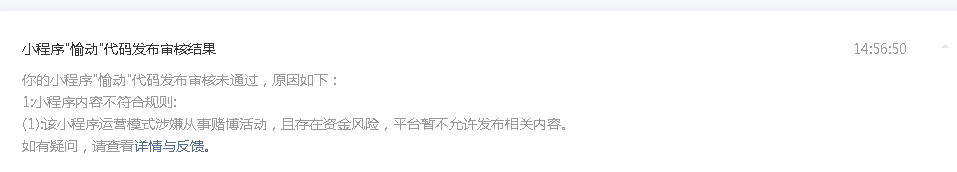 你好,经核实,贵方小程序页面含“分享朋友圈”字眼,涉及平台未允许的内容:诱导分享朋友圈,请修改!