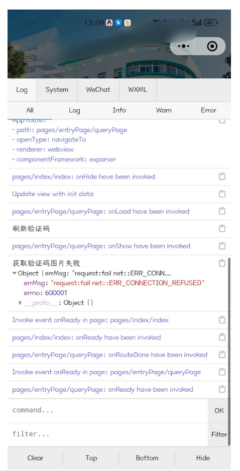 这个跟小程序没有关系,小程序直接调用的系统底层请求,底层请求报出错误,ERR_CONNECTION_REFUSED是服务器拒绝了发起的请求,可能是服务器的主动拒绝,也可能是网络防火墙的问题。