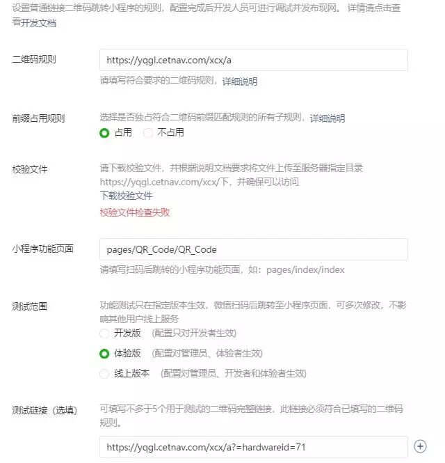 扫普通链接二维码打开小程序,提示“效验文件检查失败”访问校验文件: