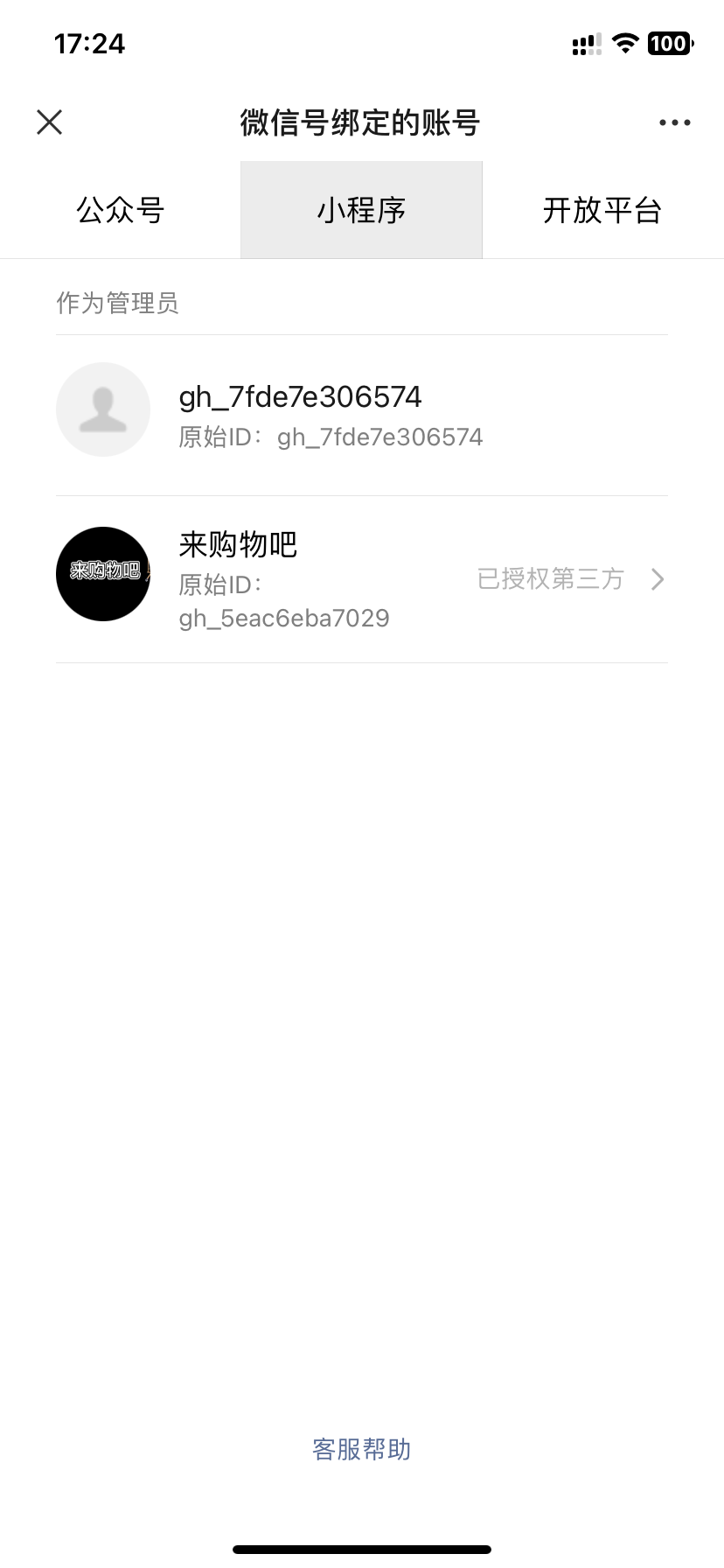 微信号:fzlkskdndn 名称:gh_7fde7e306574 原始ID:gh_7fde7e306574 名称:来购物吧 原始ID:gh_5eac6eba7029