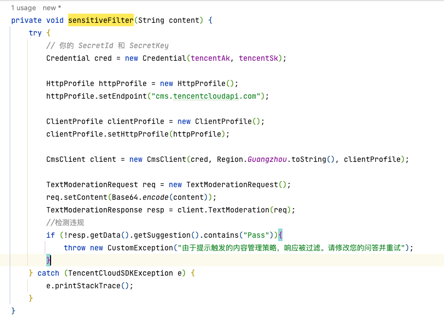 尊敬的审查员,我们已经使用微信官方的内容安全审核接口进行敏感词过滤,对于过滤的敏感词进行提示并清除回显。