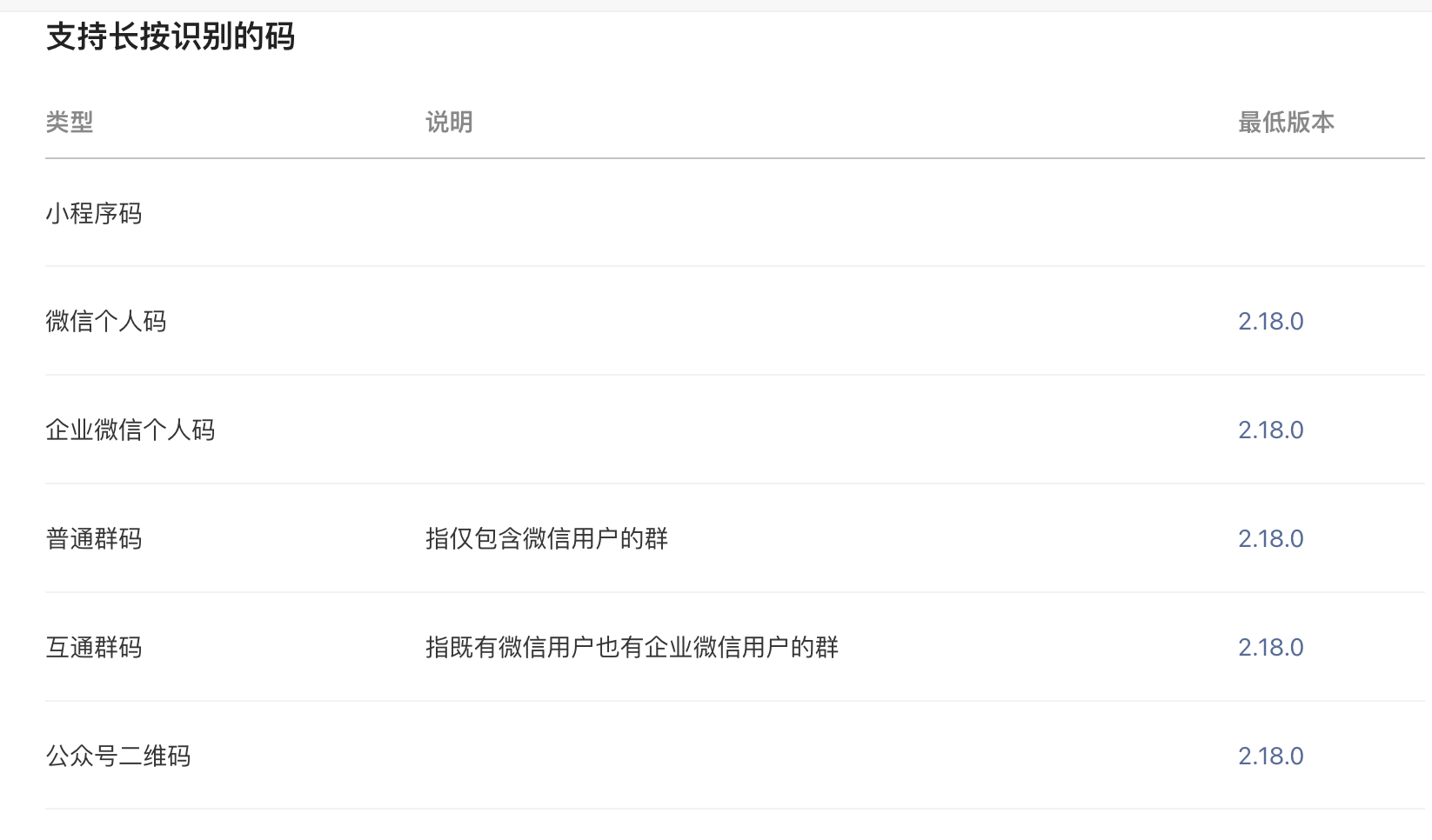 目前仅支持长按识别部分码:https://developers.weixin.qq.com/miniprogram/dev/component/image.html