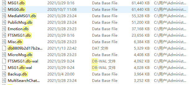 于是我在微信的根目录“C:\Users\Administrator\Documents\WeChat Files\我的微信号”搜索关键词“.db”并在 查看>排序方式 中选择 大小&递减
