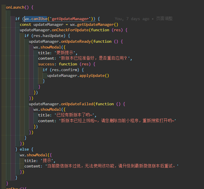 我放在app里面的onLaunch里了啊,然后在工具调试的时候是正常的,然后我就提了版本审核通过 全量发布后,再进之前没删除过得小程序,却不会弹“版本更新”的提示呢????为啥呢??是我没看黄历吗?