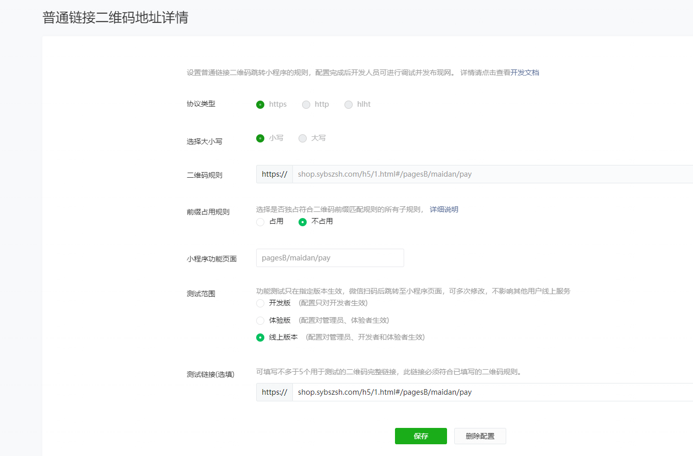 普通链接二维码地址配置:
