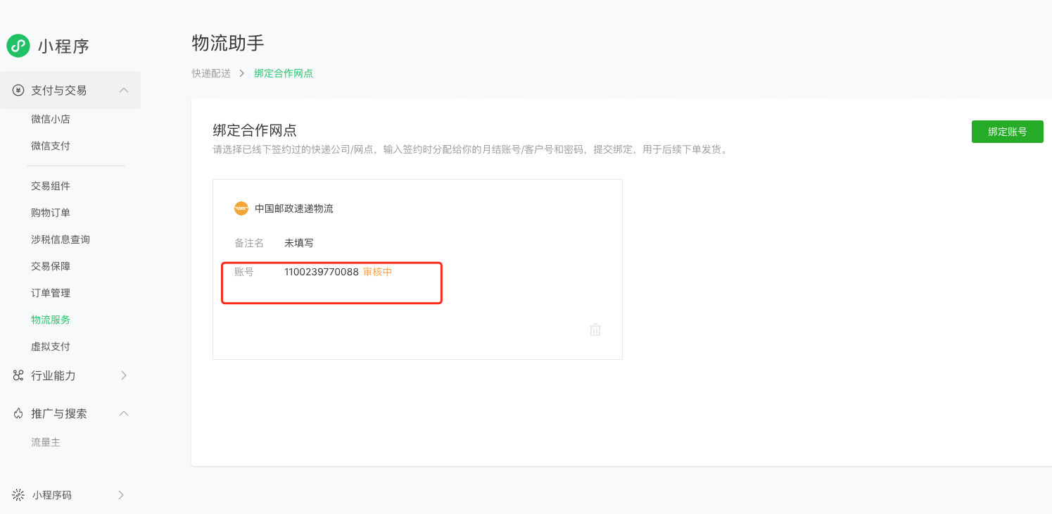 和邮政确认过了,邮政已经把账号审核通过了,就微信一直在审核中