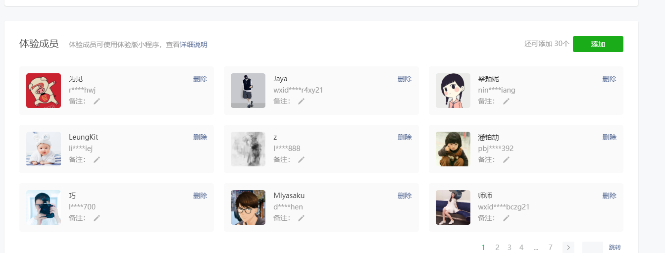 如图。体验成员90个,要一次性清除,需要一个一个点。没点一次,还得请求一边微信后台,速度相当感人。有没有什么办法,一次性批量删除呢。