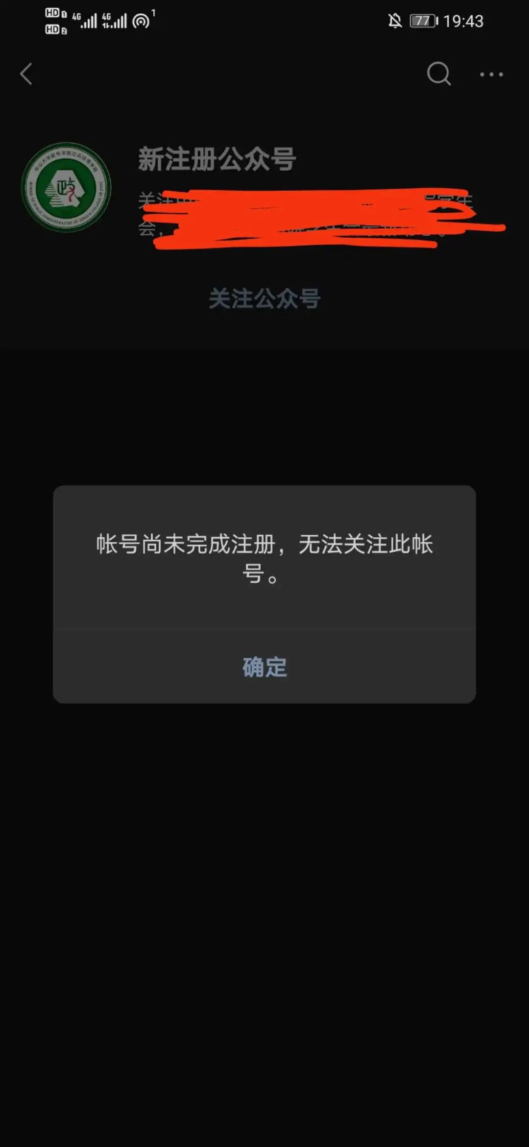 。。。不是尚未注册完吗,。肯定关注不了啊~~~~哥们,你这问题问的,,,继续完成后面的注册任务啊!~ 该注册注册, 该认证的认证(同主体下如有2个账号都未认证,需要认证一个号先)