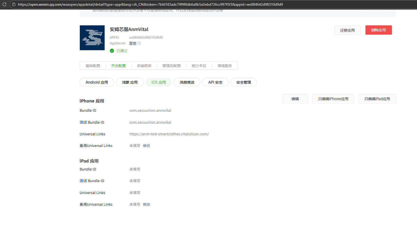 微信开放平台ios审核通过了,也配置了universal link,也能在safari里输入网址,能打开自己的应用。但是登录的时候,还是报这个错。