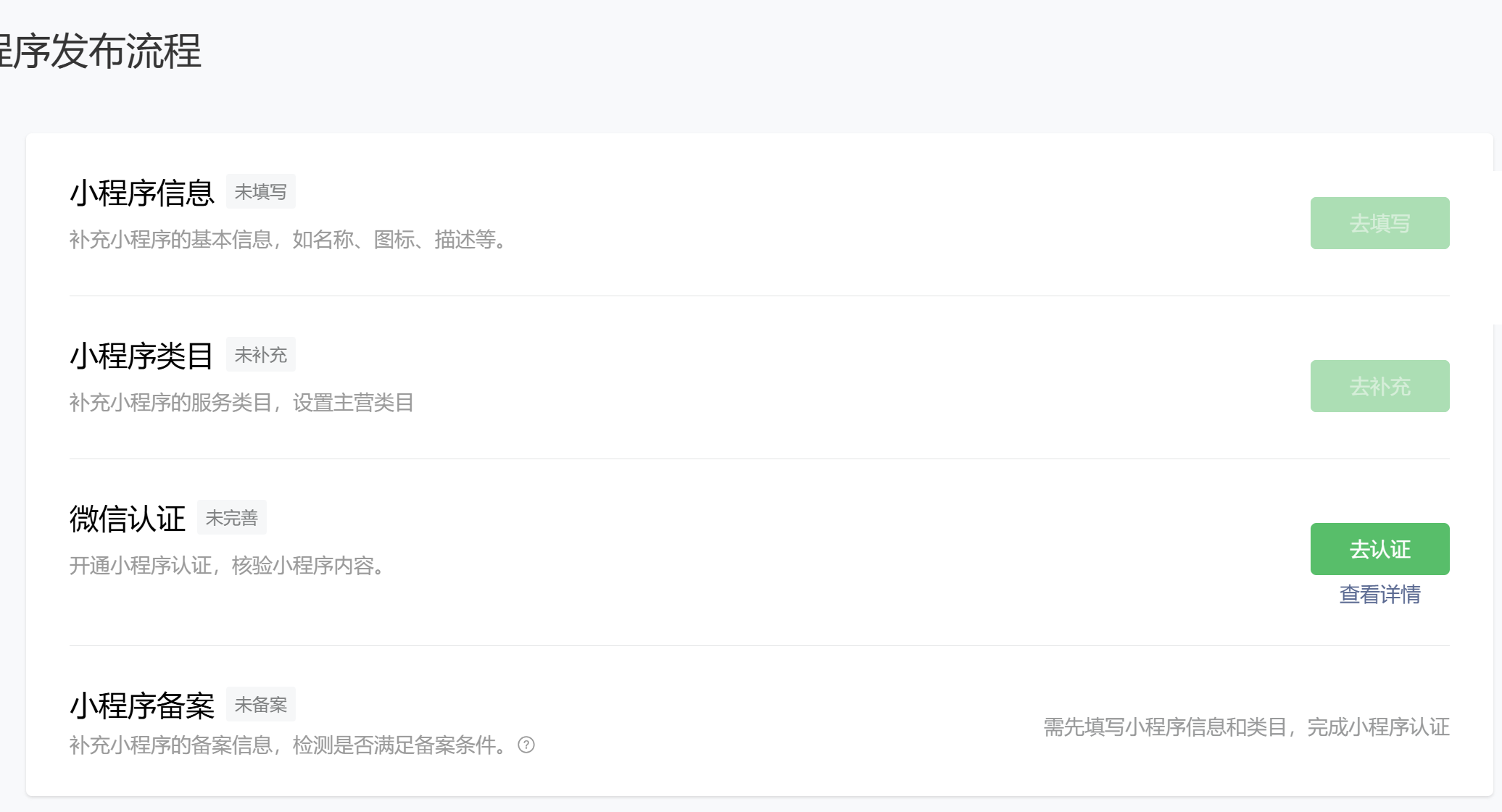 你好,需先完成微信认证审核后才可补充小程序信息、小程序类目。