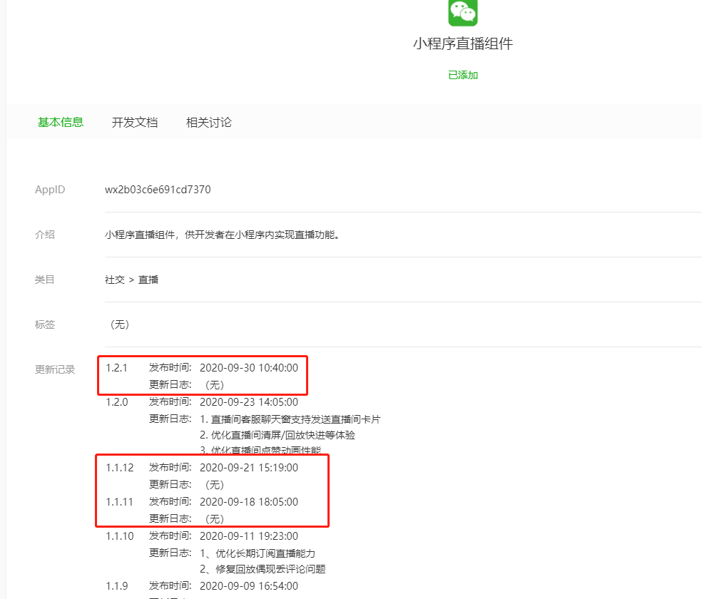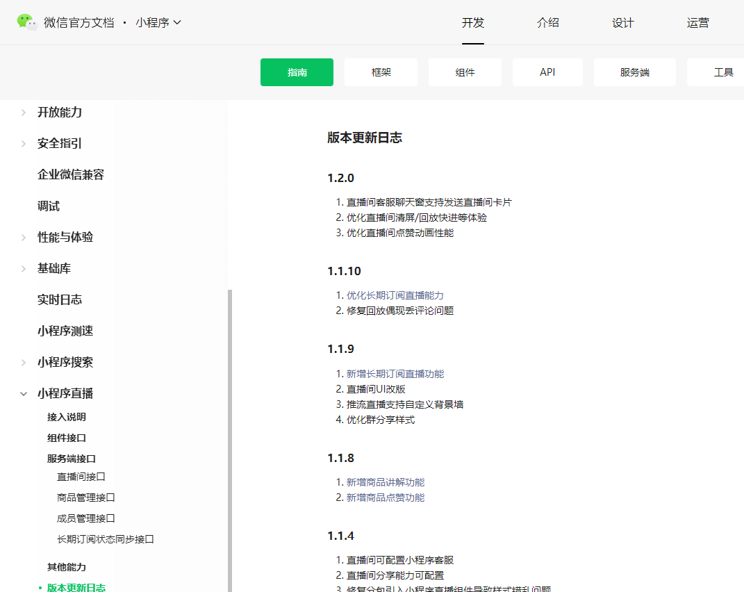 开发文档的版本更新日志才到1.2.0,你按这个版本来呀,你进小程序公众平台里面可以查看到小程序直播的所有的小版本,但是很多都没有日志说明的,1.2.0跟1.2.1就没区别,你为啥要找事去多写一个1呢,等他稳定了再上,不香吗?