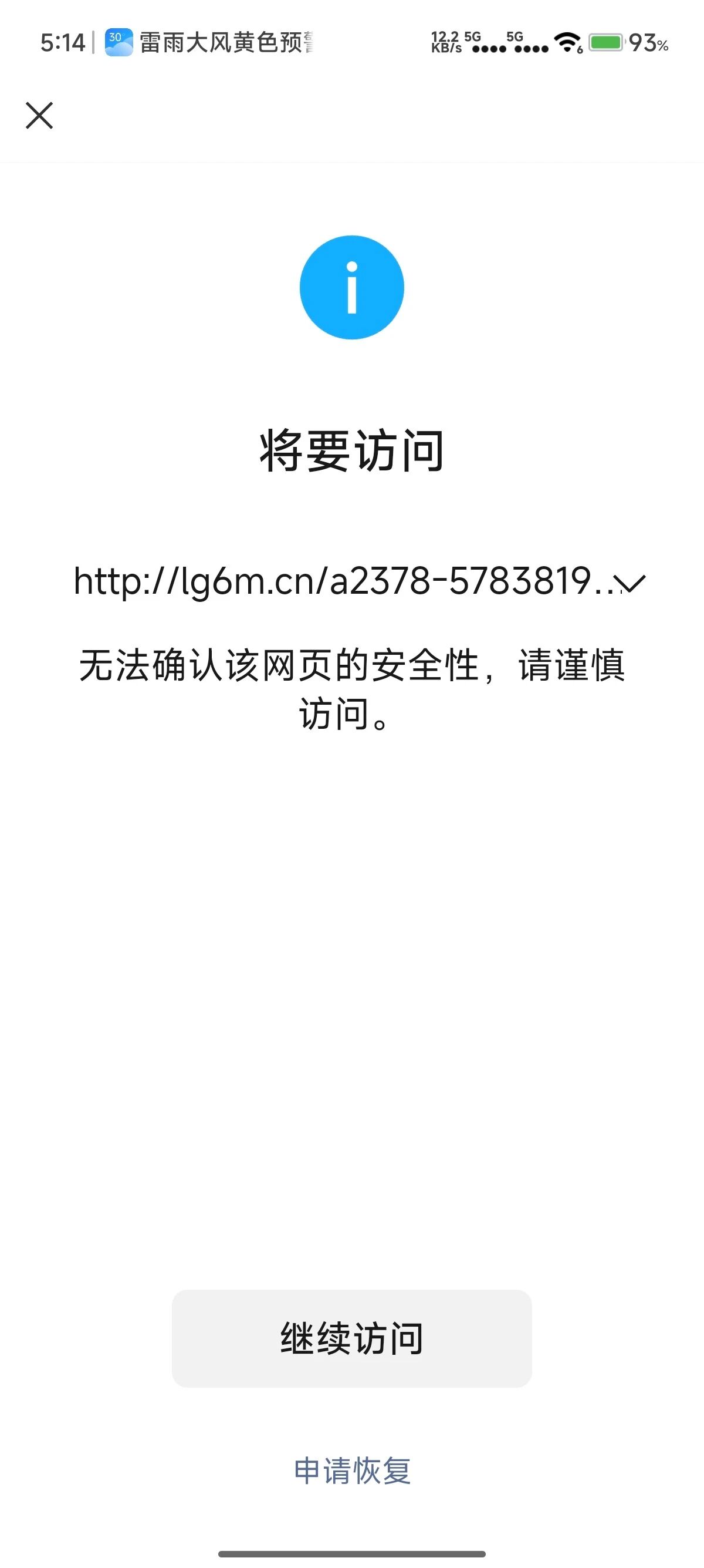 您好,网址lg6m.cn浏览器访问正常,域名备案完成,腾讯安全网址安全中心检测没有问题,下图是微信访问时间如图2025/9/17,微信访问网站出现“无法确认该网页的安全性,请谨慎访问”,经检查网页里没有不安全的内容,请核实后帮忙解除拦截,谢谢!