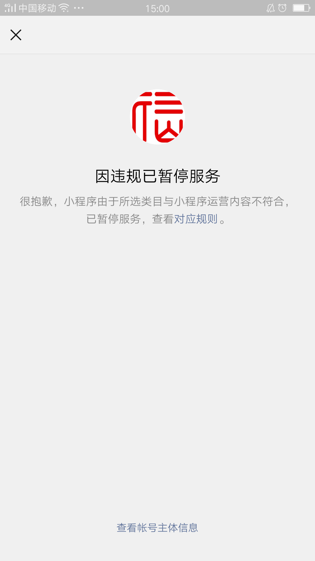 【类目不符】小程序后台没有收到违规通知,也没有违规记录,但是扫码显示小程序因所选类目与运营内容不符被暂停服务。我们的小程序商城选的是“食品”类目,经营的都是营养补充食品,没有任何功能性描述,这些食品并不属于保健品。麻烦看下我们这边需要怎么整改,如何才能让小程序正常工作?