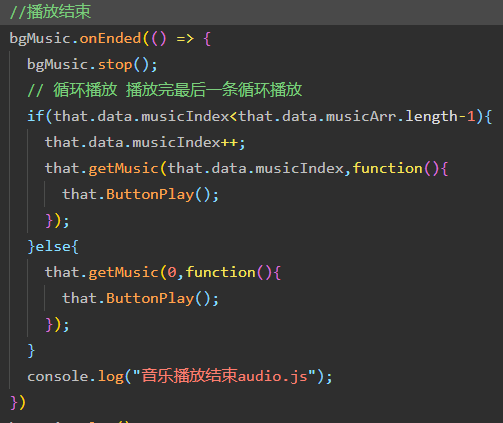 // 用背景音乐试试? onReady() { this.back = wx.getBackgroundAudioManager() // 对实例进行设置 this.back.src = "https://qiniu-video.qtshe.com/qtshe.mp3" this.back.title = '青团社8周年庆' // 标题为必选项 this.back.play() // 开始播放 // 1、onEnded监听播放自然结束 this.back.onEnded(() => { // 2、必须重新设置src才能循环之后会重新自动播放 this.back.src = "https://qiniu-video.qtshe.com/qtshe.mp3" }) this.back.onStop((res) => { this.back.pause(); }) },