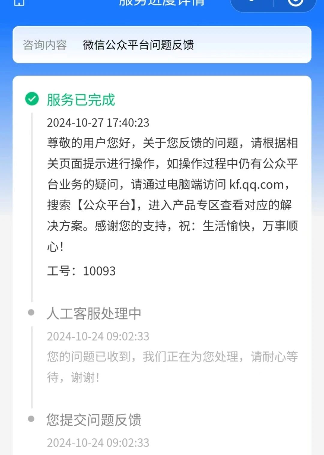 关于2024年9月末至今,公众号文章断崖式阅读量下滑,从之前的8W、2W,到现在的0阅读量,群发也是0,粉丝有一千多,咨询平台客服,回复让我自己去【公众平台】进入产品专区查看对应解决方案,关键是根本也没有解决方案啊,问了好多次都是特别机械式敷衍回复,微信这么大平台,不光微信小店还是公众号平台客服人员都这么业余么?到底谁能解决问题!