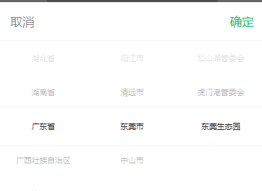 原来广东省的东莞市和中山市,海南省的儋州市、甘肃省的嘉峪关市是没有区/县这一级的,小程序把第四级的镇/街道 放到了picker的第三列。又由于第四级(镇、街道)的行政区域编码不能用六位表示(行政区域编码的前六位对应身份证的前六位),所以取了市的区域编码的前四位(东莞市是441900,取了4419)在加上顺序(01、02、03...)去生成六位区域编码。