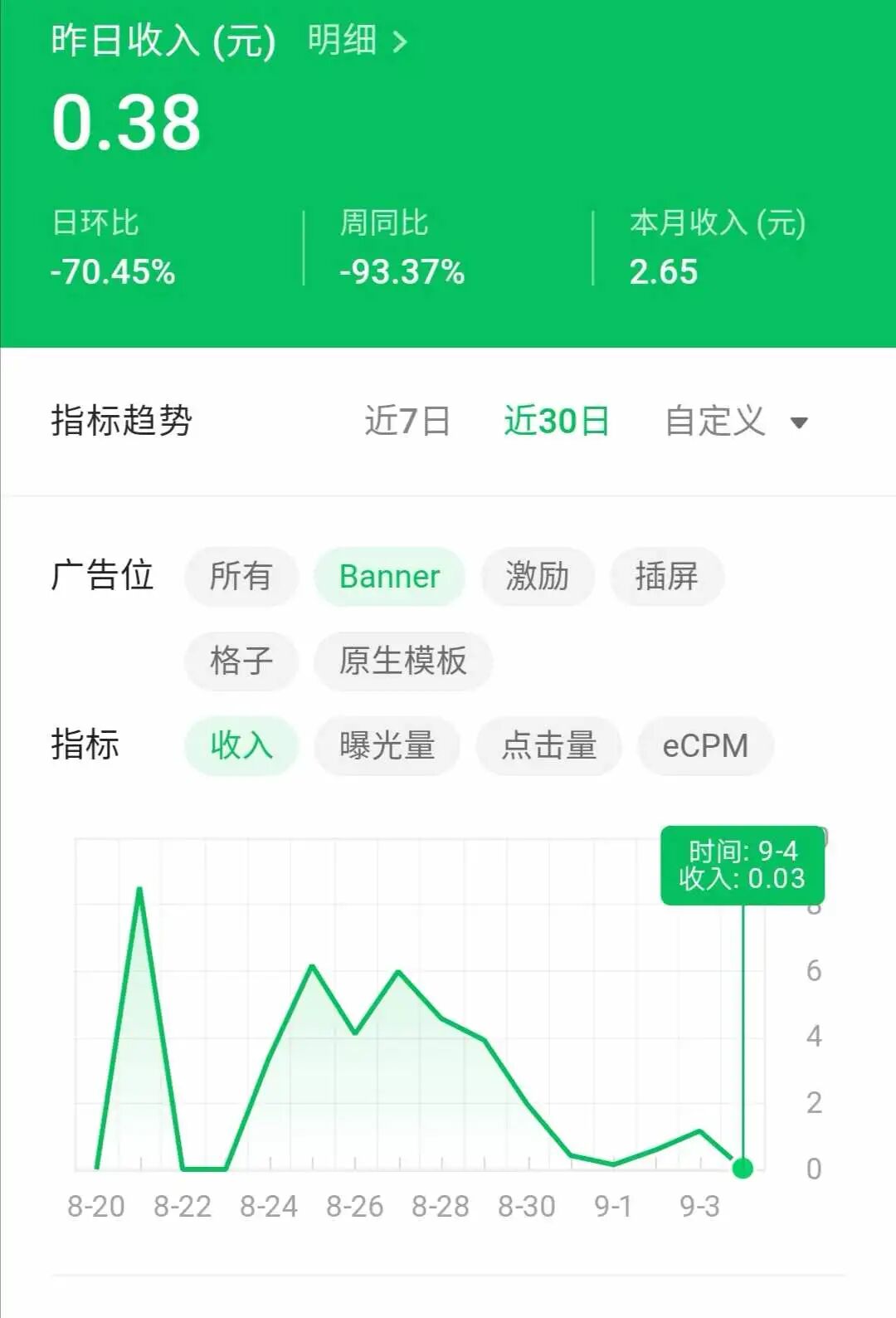 昨天亲眼看到几个朋友点击了Banner广告,而且点击不同内容的新广告,还通过广告主进行流量推广,结果早上得到的数据尽然才1次点击,收到0.03元的收入。 这样的数据匪夷所思,不客观严重失真,做流量主有种被欺骗的感觉,这样的数据做流量主还有意义吗!!!!