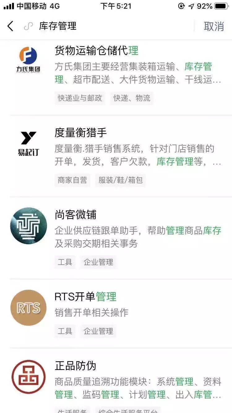 结果,名称中有库存管理的小程序,没有出现,但介绍里面有类似字的却还出现了,还挺靠前的,这是什么逻辑!