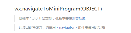 文档链接:https://developers.weixin.qq.com/miniprogram/dev/api/navigateToMiniProgram.html