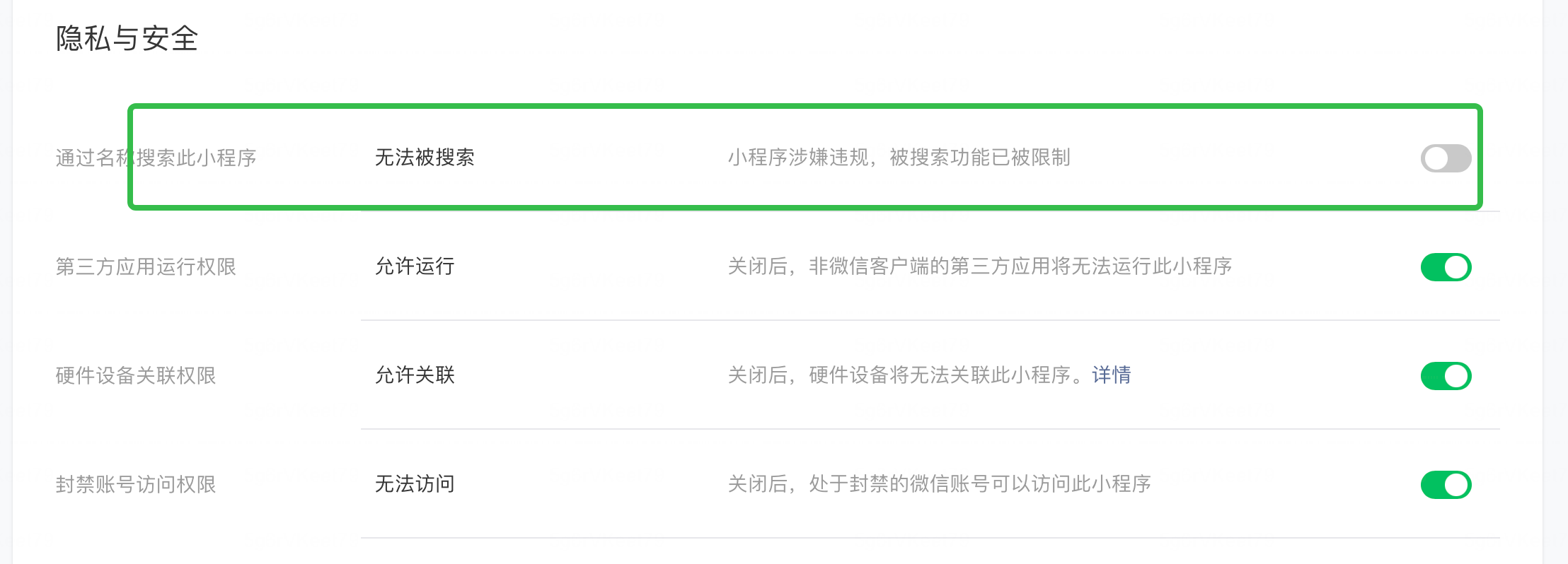 刚注册小程序,在写介绍提及其他平台,提交不上去,然后修改了,提交上去了。结果在隐私那块说涉嫌违规,无法被搜索,这正常吗?我还没认证, 备案到时今天通知过了。