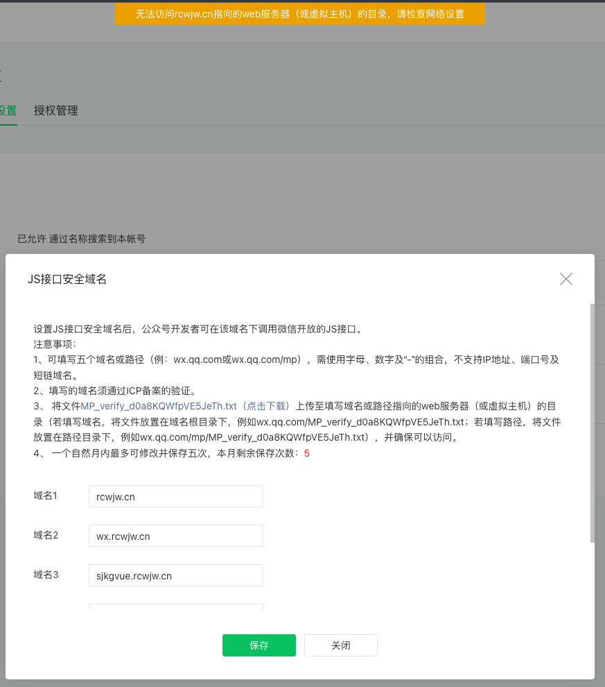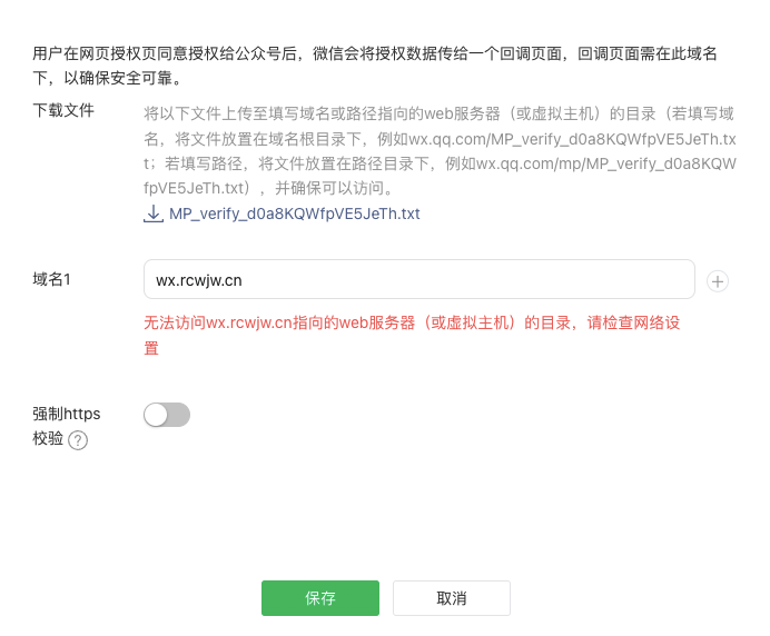 http://wx.rcwjw.cn/MP_verify_d0a8KQWfpVE5JeTh.txt http://rcwjw.cn/MP_verify_d0a8KQWfpVE5JeTh.txt http://sjkgvue.rcwjw.cn/MP_verify_d0a8KQWfpVE5JeTh.txt 以上地址访问均无任何问题。 根据其他帖子的情况排查均无任何问题。但是就是无法通过