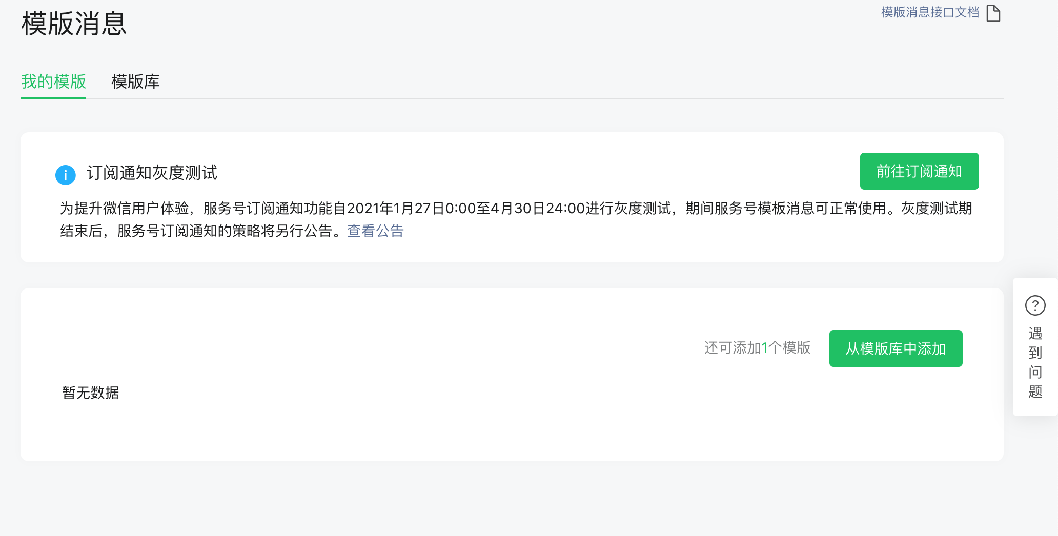 公众号模板消息即将下线?后台已看不到了。等待官方答复。