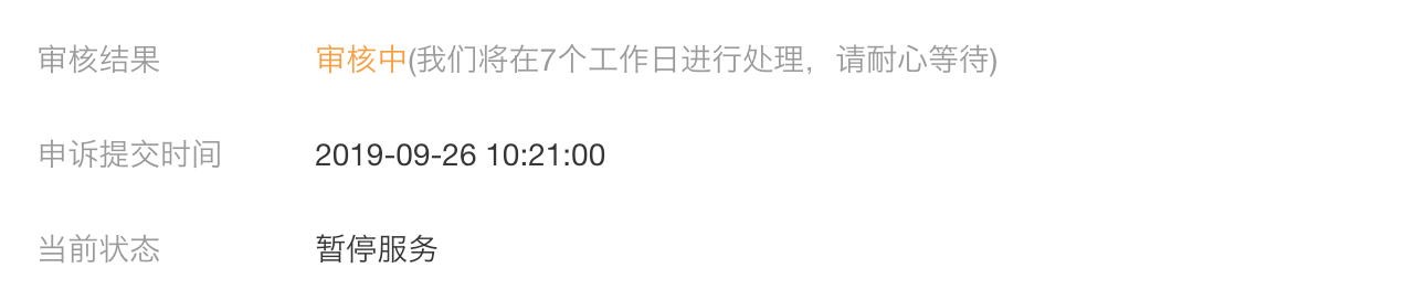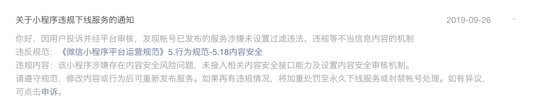 希望能及时处理申诉,恢复小程序服务。