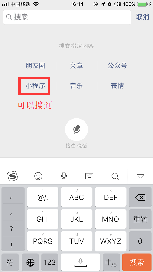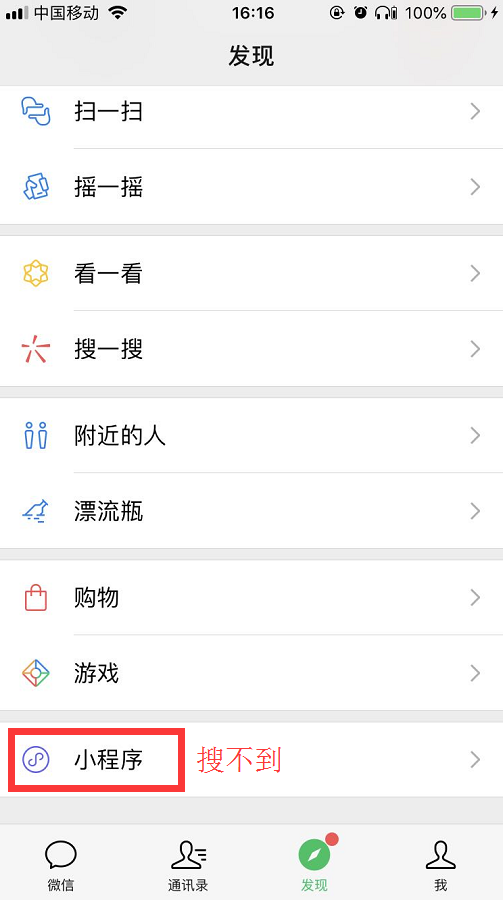 小程序已发布,在发现-小程序中搜不到,但是在聊天列表顶部的搜索-小程序中,是可以搜索到的。