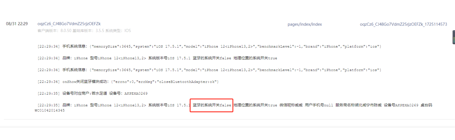 手机蓝牙、小程序蓝牙、微信设置处的蓝牙均打开的前提下,小程序连接设备显示请打开手机蓝牙是什么原因?用户已将日志上传