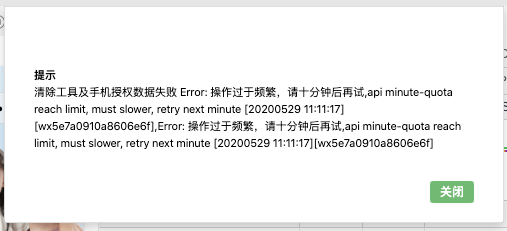 今天第一次打开开发者工具,就提示操作过于频繁,这两天一直出现这种情况,包括代码上传和缓存清除。已经重装了开发者工具好几次