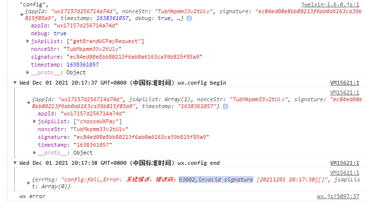 域名是http://dev.xfaner.cn/personCentre,签名用官方工具试过没有问题。需要调用支付接口,jsApiList里面本来是chooseWXPay,变成了getBrandWCPayRequest,timestamp是number类型,到wx.config begin就成了字符串。很疑惑,是这些导致的问题吗?