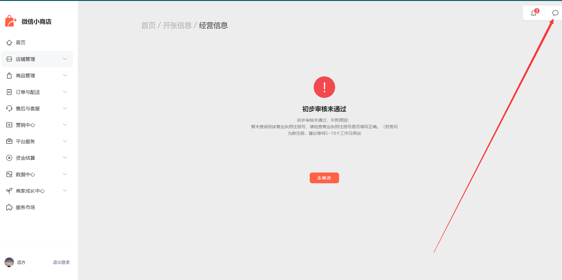 你好,请根据页面审核提示进行核对;可进入小商店后台“官方客服”联系客服。