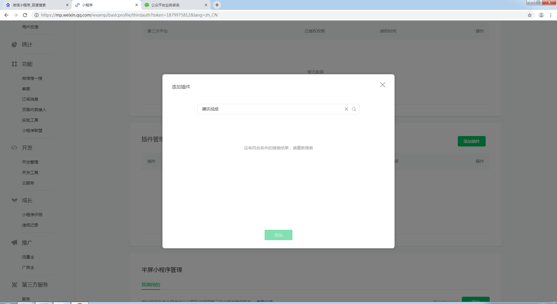 不符合插件资质要求的无法添加