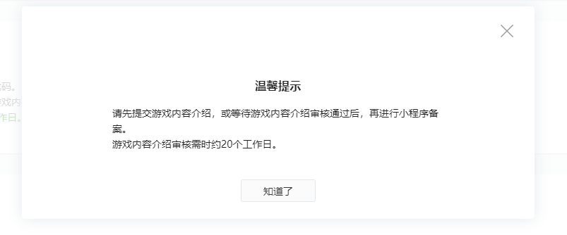 18号站内信已经通知内容通过审核让去提交备案。到今天仍然提交不了备案,备案页面显示游戏内容介绍仍在审核中。请问是什么情况